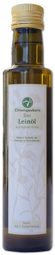 Leinöl weist mit den höchsten Gehalt an Omega-3-Fett-säuren aus pflanz-lichen Quellen auf. Da Leinöl sehr empfindlich ist, sollten Sie es im Kühlschrank (oder im Tiefkühlfach) aufbewahren und die geöffnete Flasche innerhalb weniger Wochen aufbrauchen.