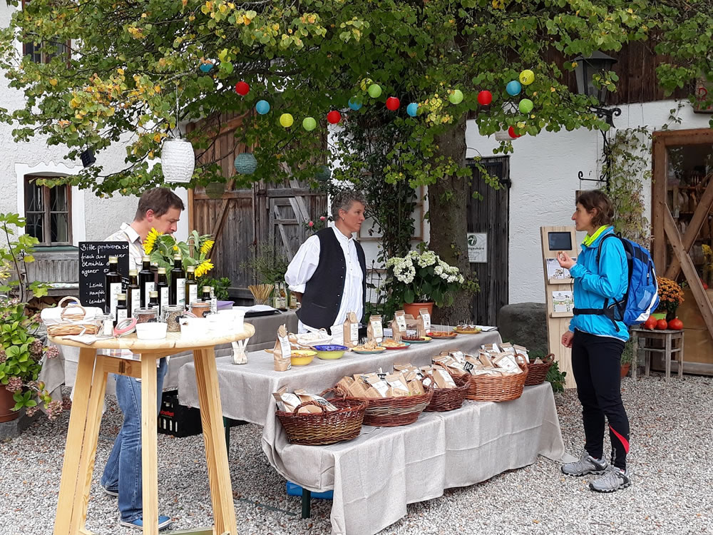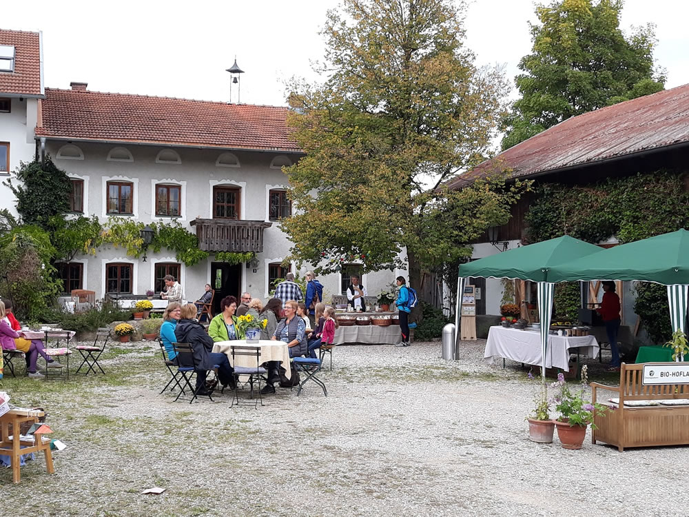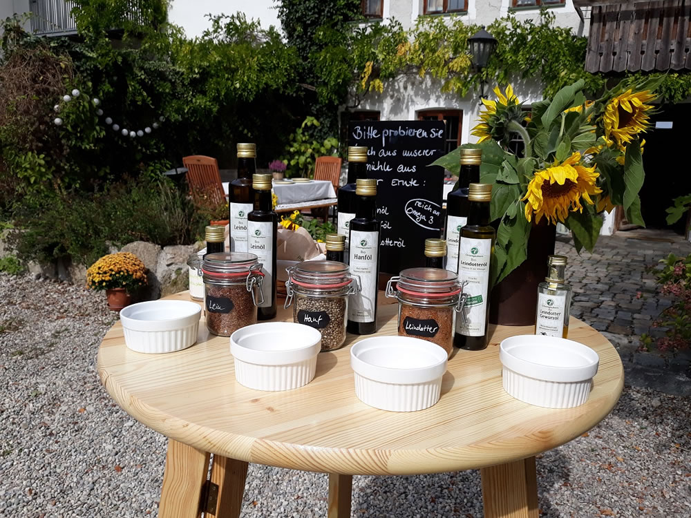 Gut gemeint hat es die Sonne mit uns bei unserem ersten Chiemgaukorn-Probiertag am 22.09.2017. Viele altbekannte und viele neue Gesichter kamen, um sich durch die Leckereien durchzuprobieren: Da gab es Emmer-Brownies, Einkorn-Muffins und Zitronenkuchen aus unseren süßen Backmischungen, außerem den feinen Schwarzplenten-Kuchen aus Buchweizen. Weiter konnten unsere Kunden alle drei am Hof frisch gepresste Öle probieren: Hanf-, Lein- und Leindotteröl sowie das feine Leindotter-Gewürzöl.