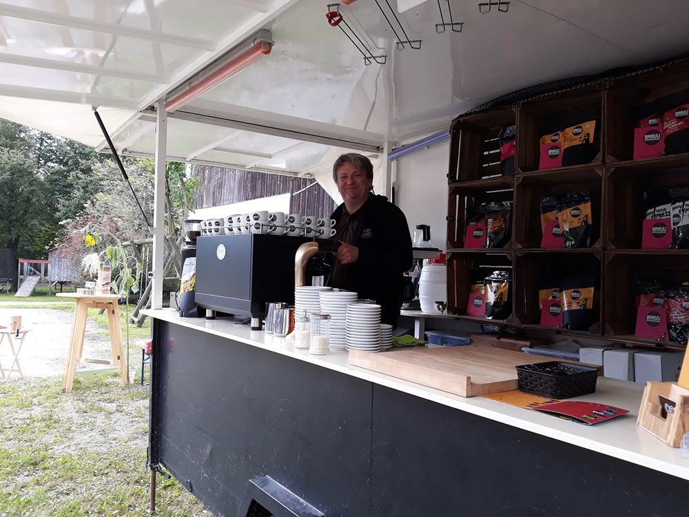 Und was wäre der Nachmittag gewesen ohne den Stand von Erwin Daxenberger, wo es besten Kaffee, Espresso, heiße Schokolade und die dazugehörige Beratung gab. Die Bio-Bohnen werden in der Baruli-Kaffeerösterei nur ein paar Kilometer entfernt in Altenmarkt geröstet und es gibt sie ganz oder frisch gemahlen auch bei uns im Hofladen.