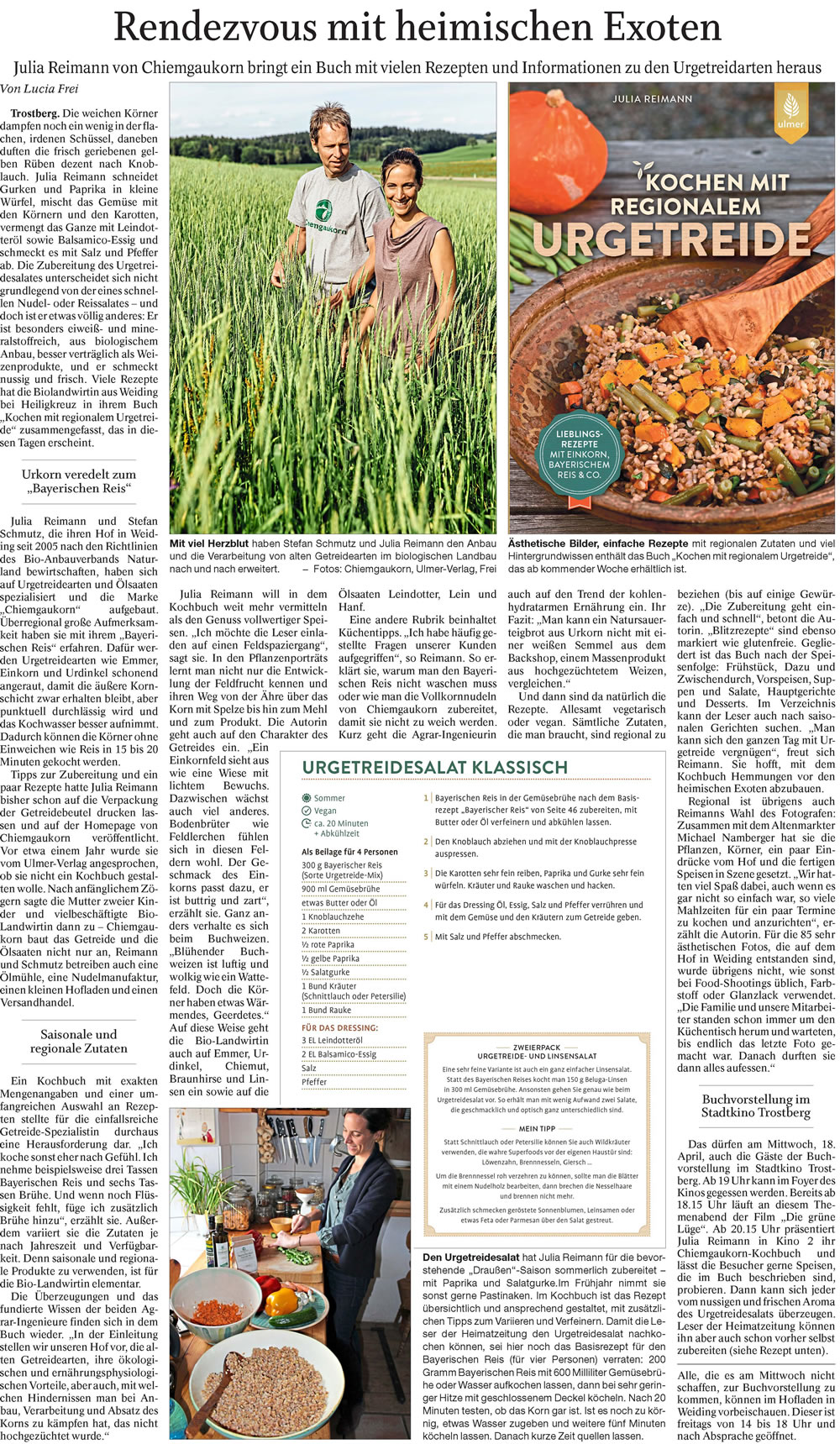 Julia Reimann von Chiemgaukorn bringt ein Buch mit vielen Rezepten und Informationen zu den Urgetreidearten heraus. Mehr lesen.