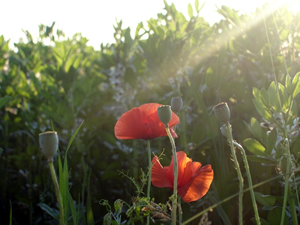 Wir glauben, dass eine große Artenvielfalt ein Gewinn für die Natur ist: Viele blütenbesuchende Insekten (und spazieren gehende Menschen!) freuen sich an bunten Feldern von Lein, Leindotter, Bohnen, Erbsen, Linsen und Buchweizen, und Reh, Feldhase und Dachs gehen in unseren ungewöhnlich hohen, oft über zwei Meter wachsenden (Ur-) Getreidebeständen ein und aus. Für die bedrohte Feldlerche sind lichte Bestände, wie sie Emmer und Einkorn bieten, wichtig zum Brüten. Außerdem legen wir beispielsweise im Dinkel gezielt so genannte „Lerchenfenster“ an, Freistellen, in denen die Feldlerche ihre Jungen aufziehen kann.