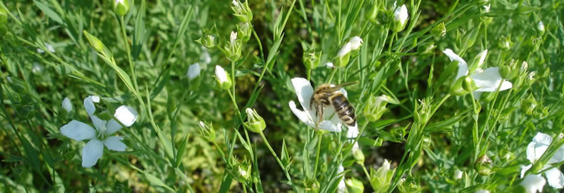 Wo es sinnvoll ist, wachsen bei uns Feldfrüchte im Mischfruchtanbau, d.h. es wachsen zur gleichen Zeit mehrere Kulturarten gemeinsam auf dem Feld. Dieses der Natur abgeschaute System bewirkt, dass Platz, Nährstoffe und Wasser ideal ausgenutzt werden. Gleichzeitig stärken sich die Pflanzen gegenseitig und schützen einander vor Krankheiten und Schädlingen. So wächst beispielsweise der Leindotter für unser feines Leindotteröl immer in Begleitung von anderen Pflanzen.