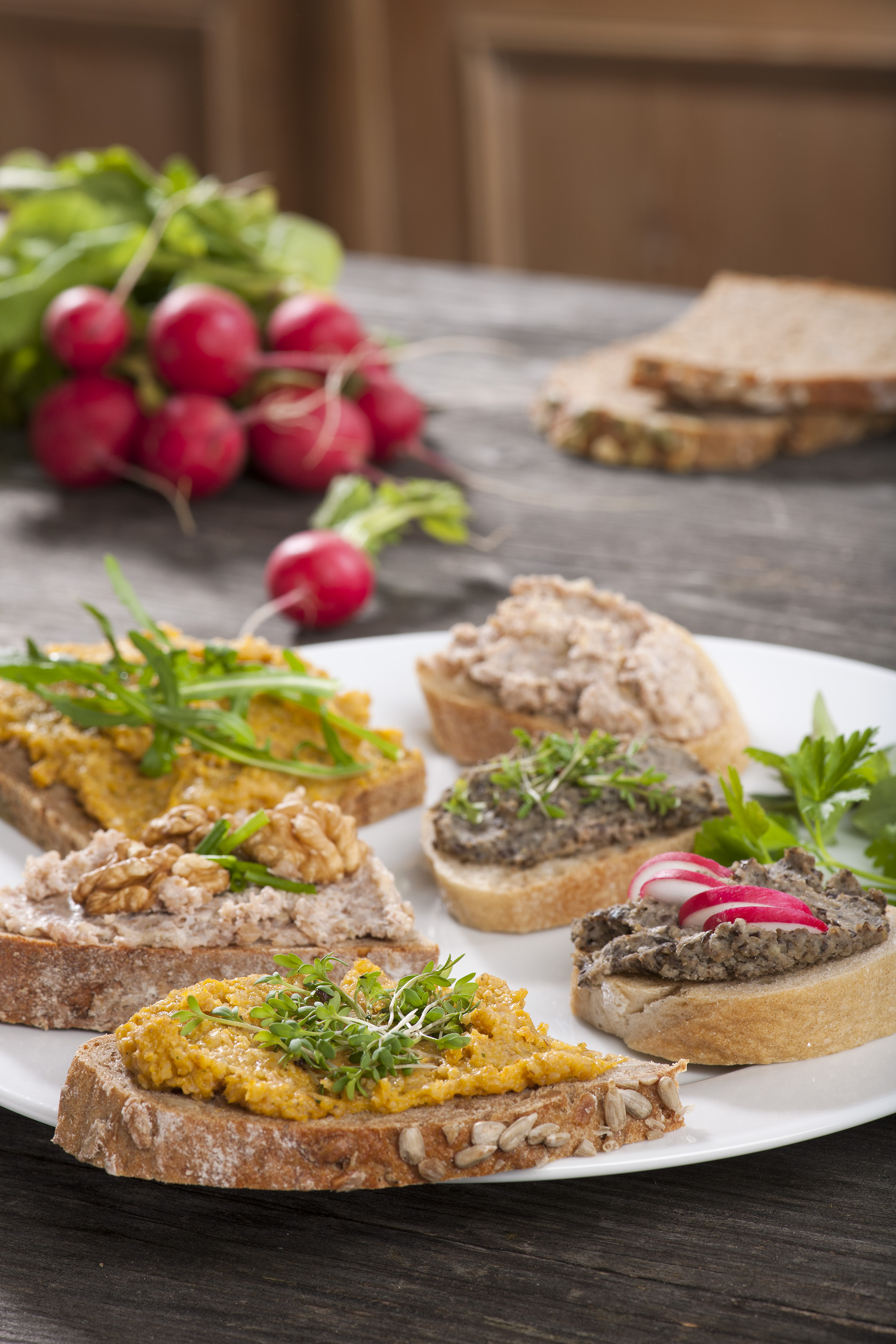 3. Den Brotaufstrich in einer kleinen Schüssel mit Kräutern bestreut servieren oder Brotscheiben damit bestreichen.