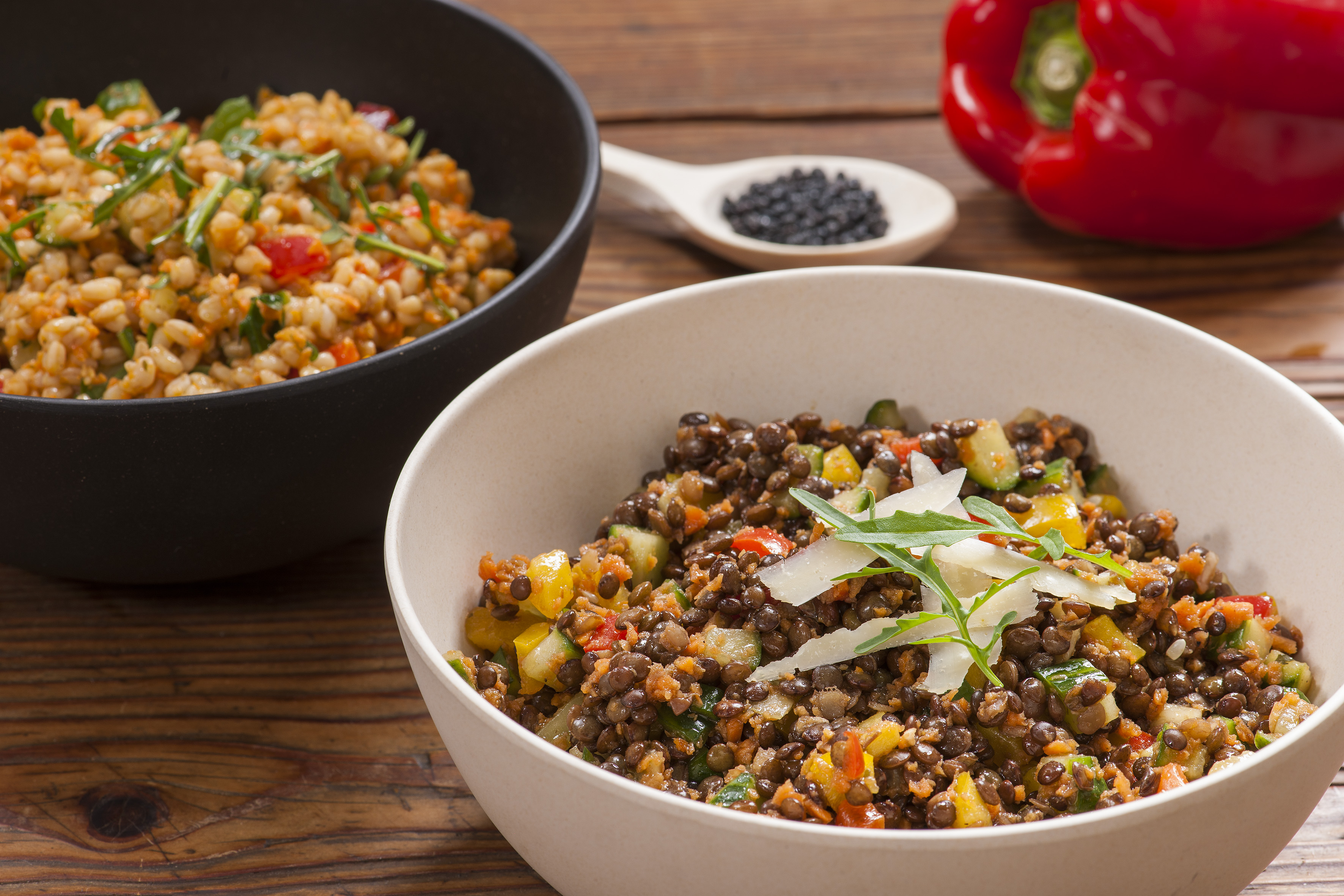 Wenn die Linsen und das Getreide gar gekocht sind, das Gemüse zugeben, mit Pfeffer und Salz abschmecken. Dazu schmeckt eine Scheibe Bauernbrot.